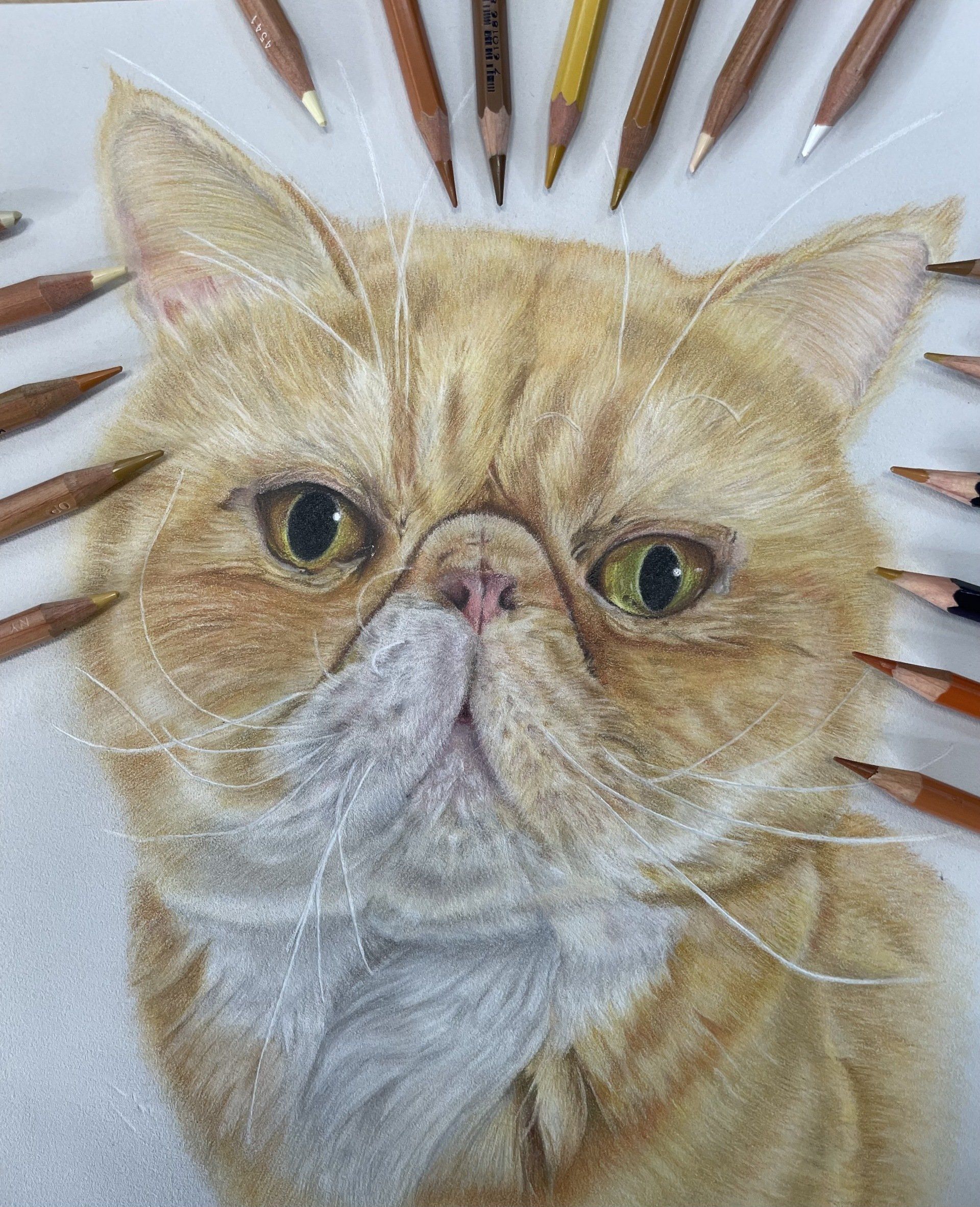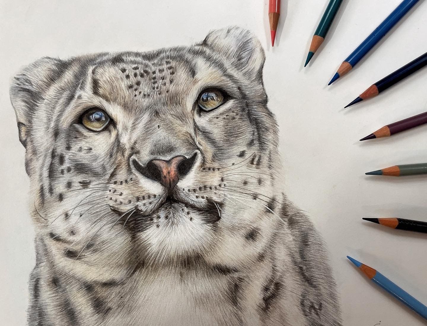 Colored pencils allow me to work with great precision, detail and simulate depth by working with many layers. Using the combination of textures and effects in my colored pencil technique you'll see that each painting has a photorealistic style.