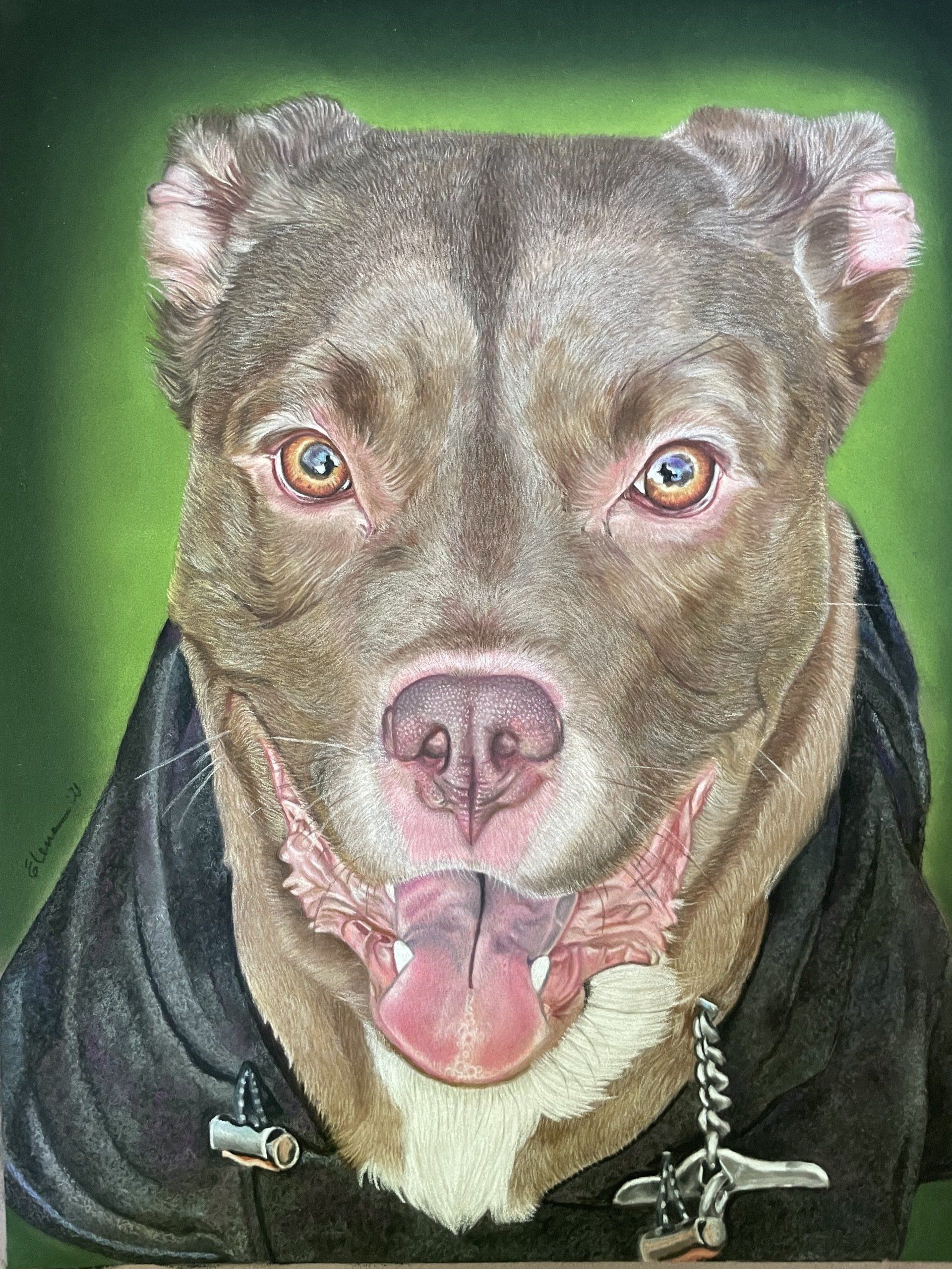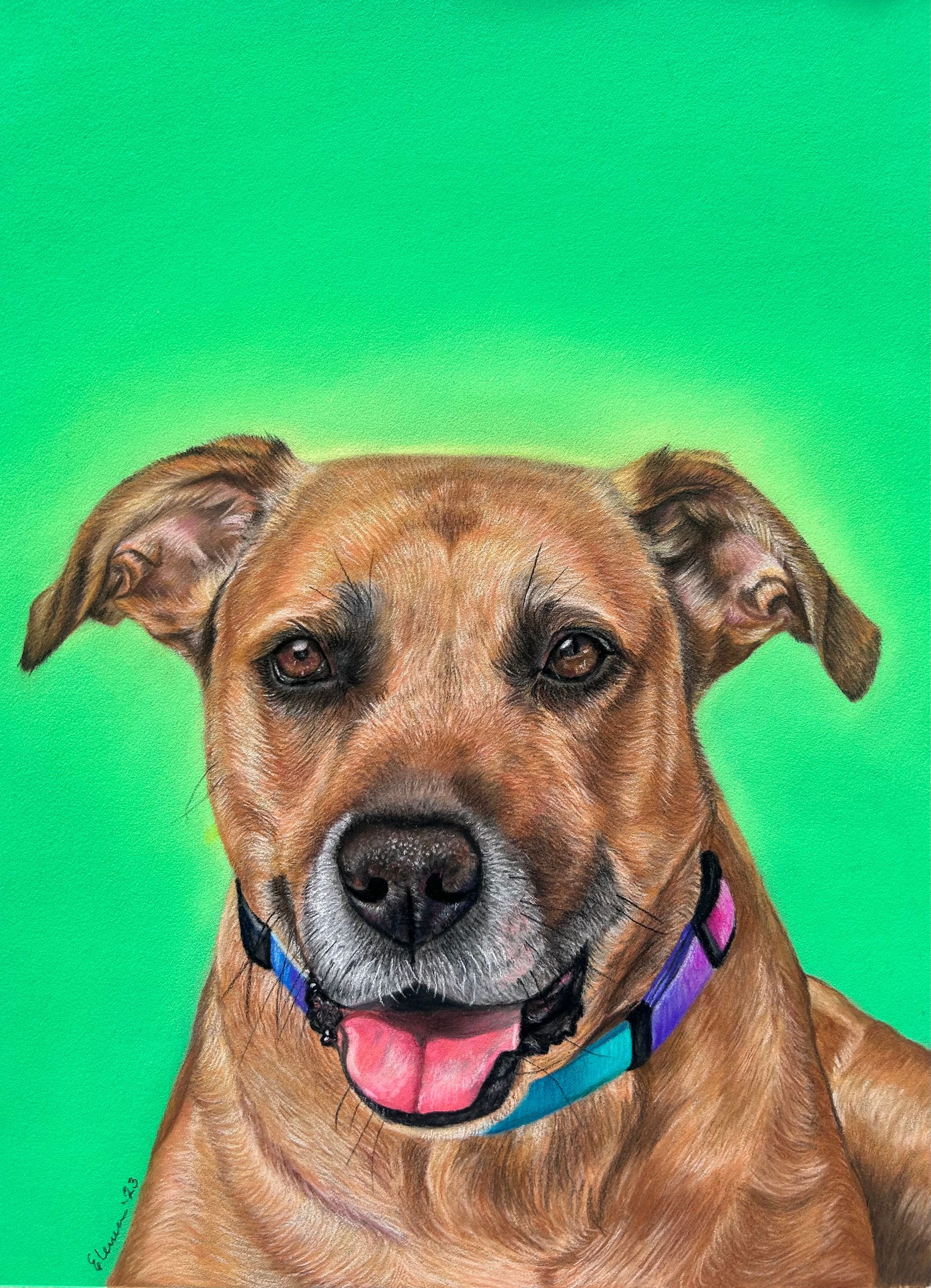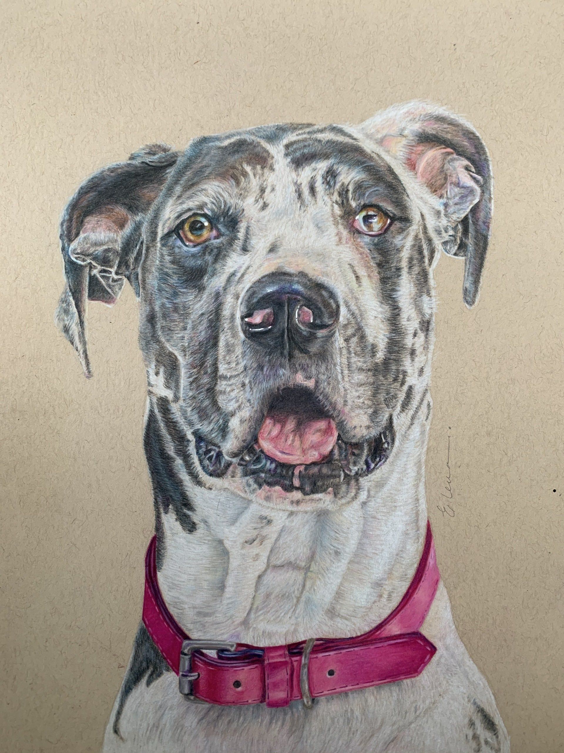 Si estás buscando un retrato de perro personalizado de tu perro favorito, estás en el lugar correcto. En Animal Art by Elena Magaña, puedo crear un retrato de perro único que refleje su alma a través de sus ojos. Checa algunos de mis trabajos y solicita un retrato de mascota personalizado.