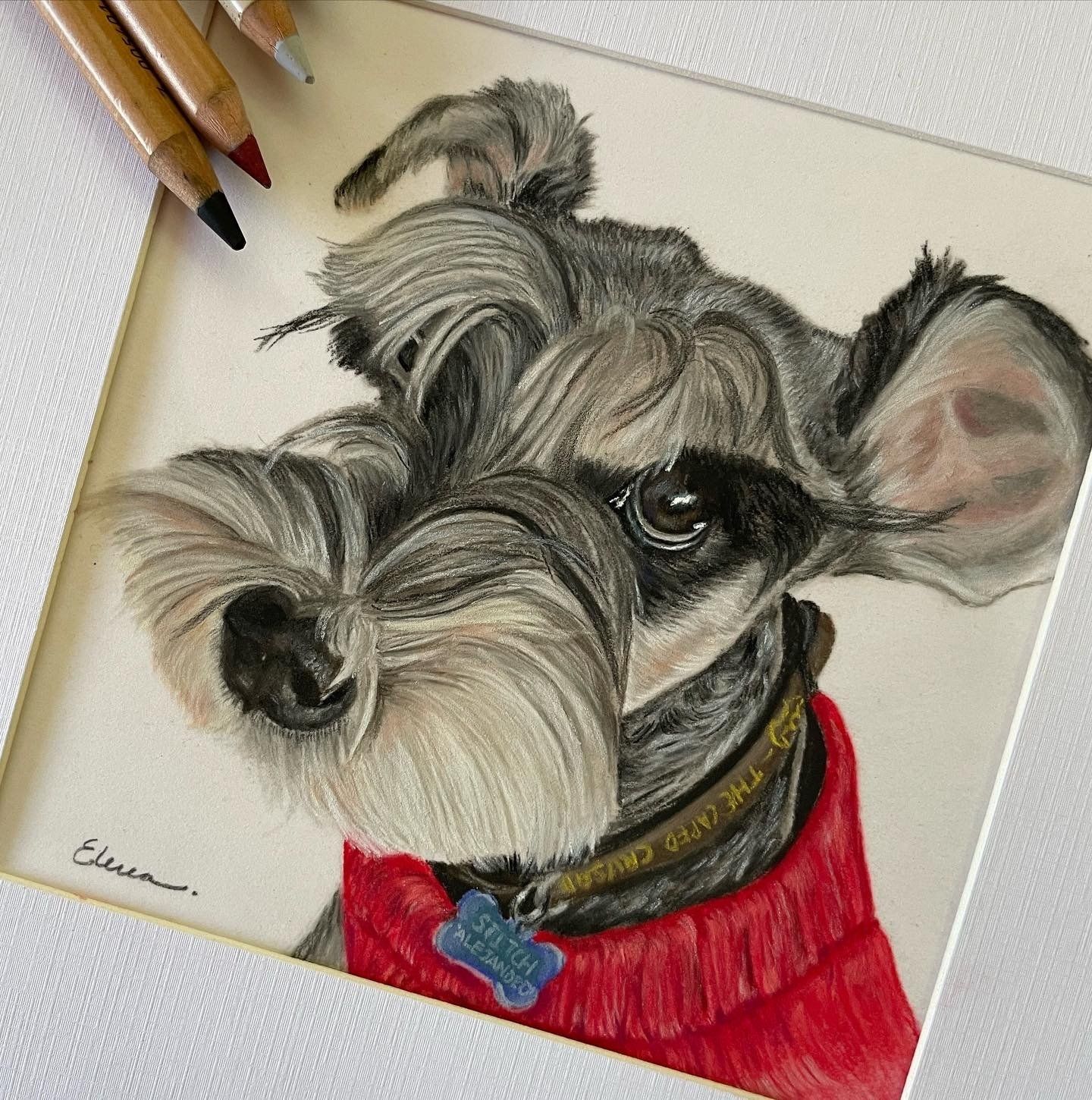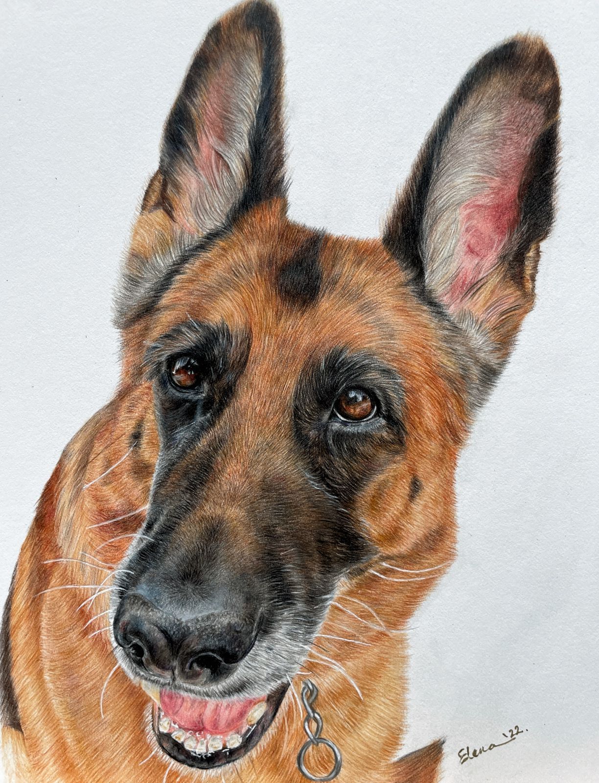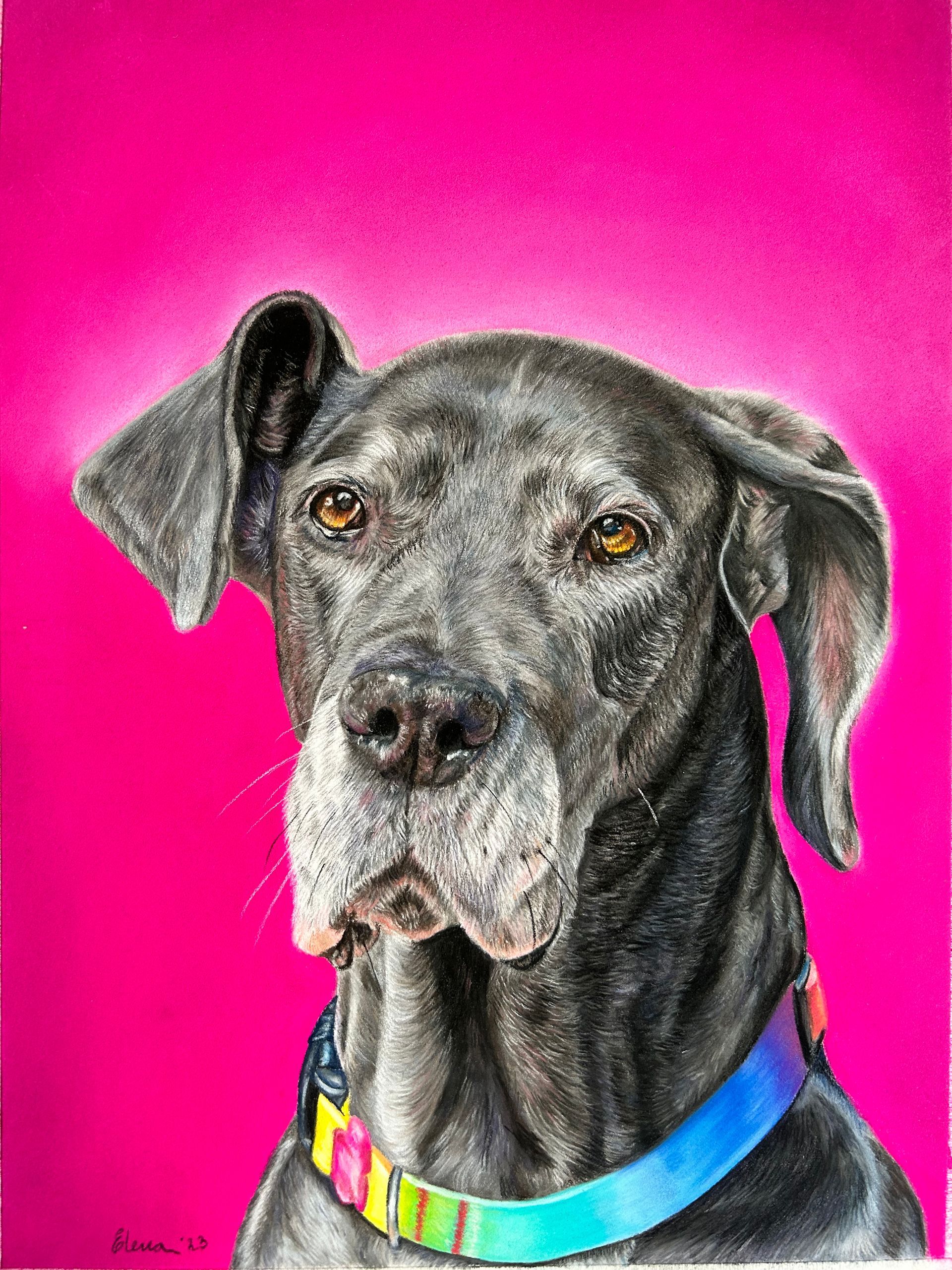 Si estás buscando un retrato de perro personalizado de tu perro favorito, estás en el lugar correcto. En Animal Art by Elena Magaña, puedo crear un retrato de perro único que refleje su alma a través de sus ojos. Checa algunos de mis trabajos y solicita un retrato de mascota personalizado.